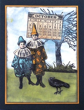 The instructions may be found here. The stamp is from another Oxford Impressions plate, Trick or Treat. The card also uses Archival™ Ink and Tim Holtz™ Distress Ink. You'll find these cards on pages 42-43.